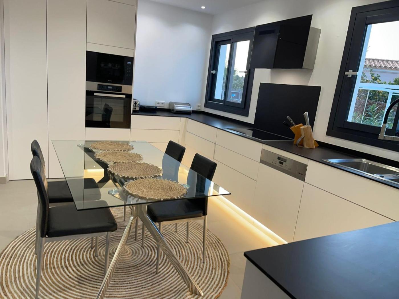 La villa tiene 4 dormitorios, 5 baños, ropa de cama, toallas, TV con canales vÃa satélite, cocina totalmente equipada y terraza con vistas a la ciudad.