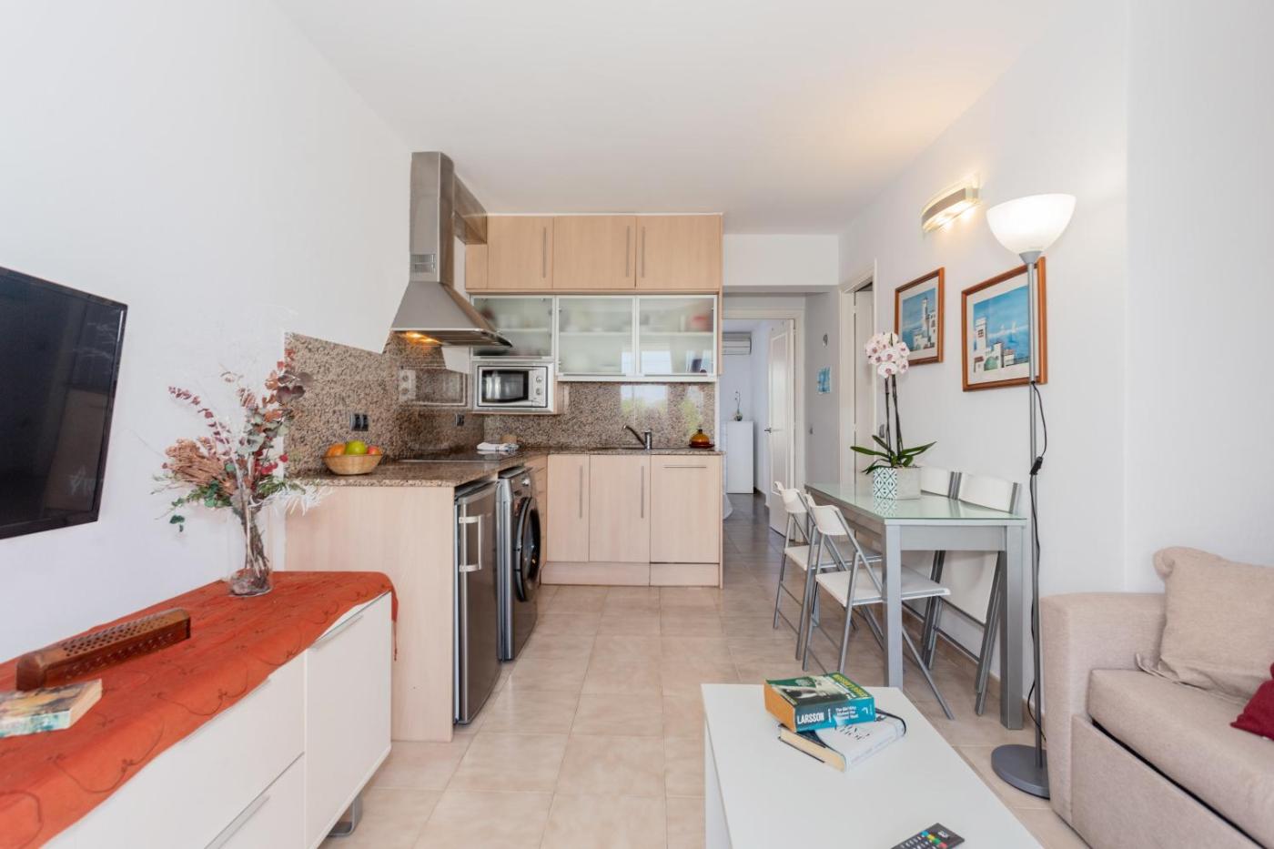 Apartamento con terraza. Featuring a private entrance, this air-conditioned apartment is comprised of 1 living room, 1 separate bedroom and 1 bathroom with a shower and a hairdryer. Guests can make meals in the kitchen that is fitted with a dishwasher, kitchenware, a microwave and a toaster. Boasting a patio, this apartment also offers a washing machine, a coffee machine and a TV. The unit offers 3 beds.