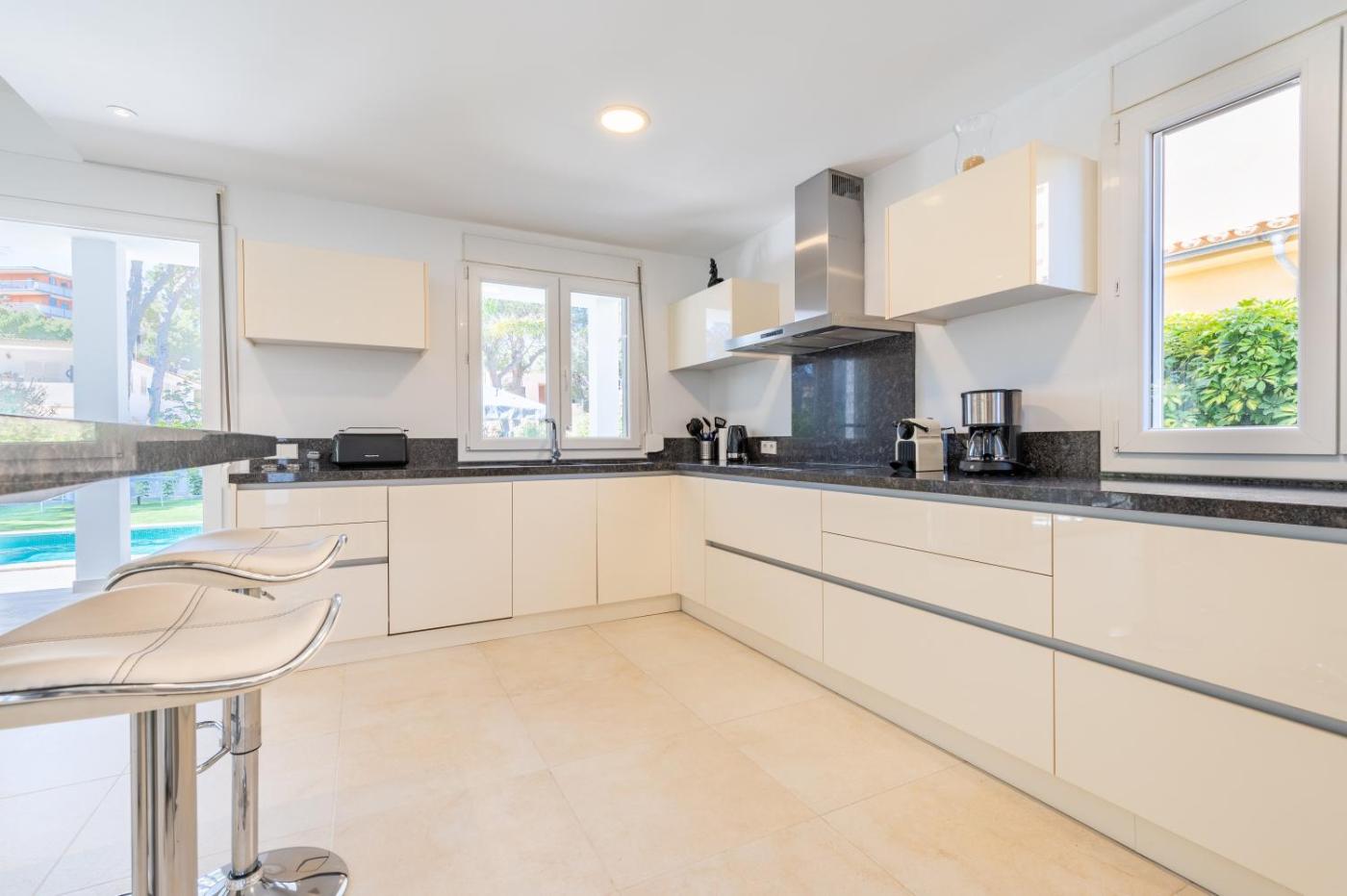 Esta villa con aire acondicionado se compone de 4 dormitorios y 4 baños con ducha, bañera de hidromasaje y artículos de aseo gratuitos. La cocina está equipada con lavavajillas y microondas, además de cafetera.