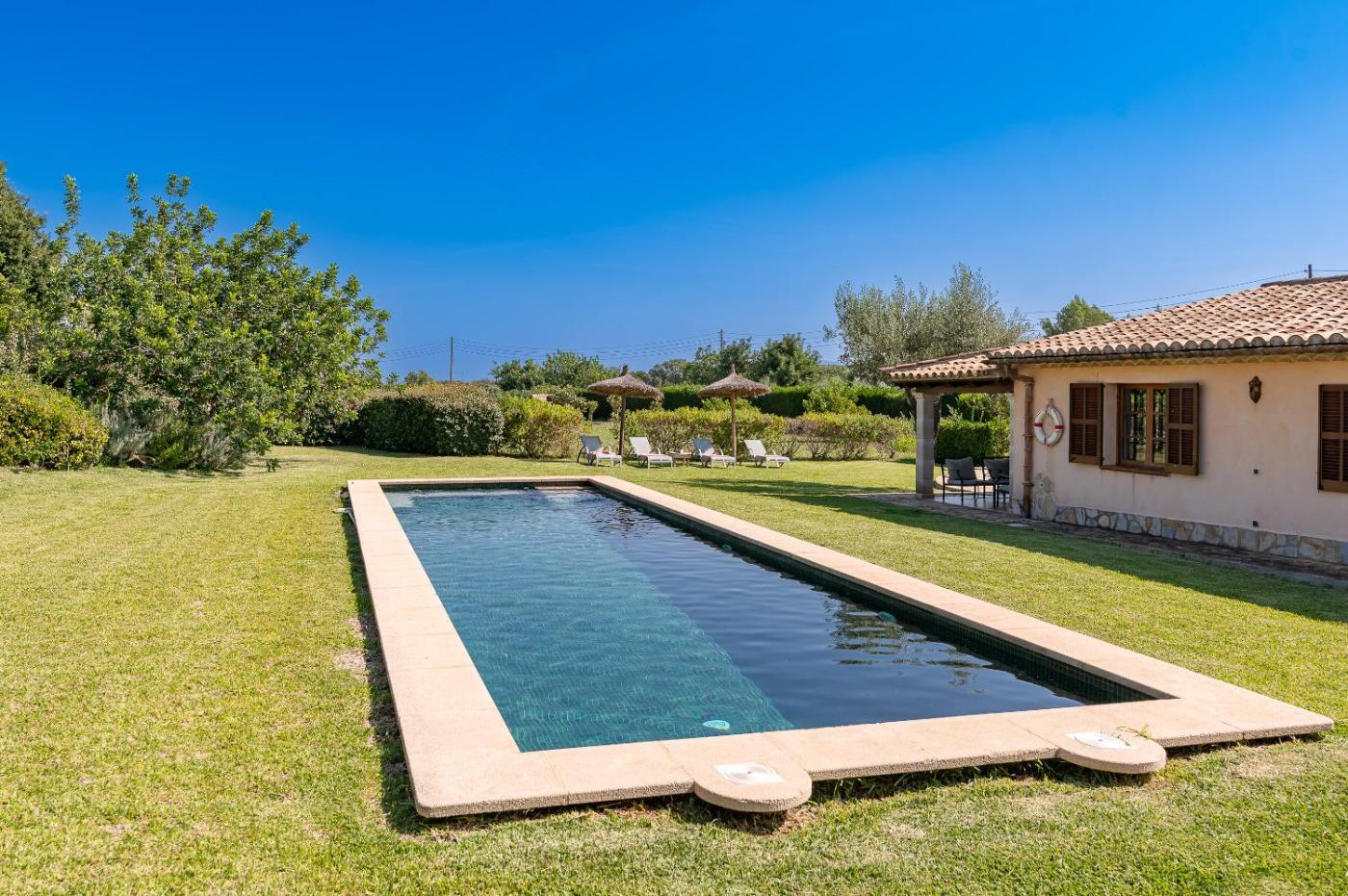 Villa con piscina privada. This villas special feature is the private pool. Featuring a private entrance, this air-conditioned villa consists of a kitchen, 2 bedrooms and 2 bathrooms with a shower and a hairdryer. Guests will find a stovetop, a refrigerator, a dishwasher and kitchenware in the fully equipped kitchen. The villa also offers a barbecue. Boasting a terrace with garden views, this villa also provides a washing machine and a TV with satellite channels. The unit offers 3 beds.