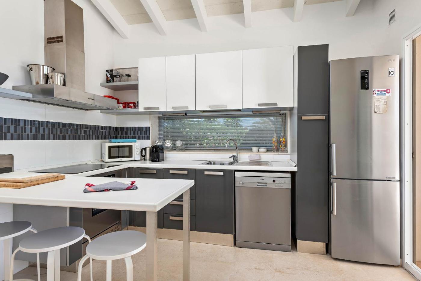La villa cuenta con 4 dormitorios, 3 baños, ropa de cama, toallas, TV con canales por cable, cocina totalmente equipada y terraza con vistas al mar.